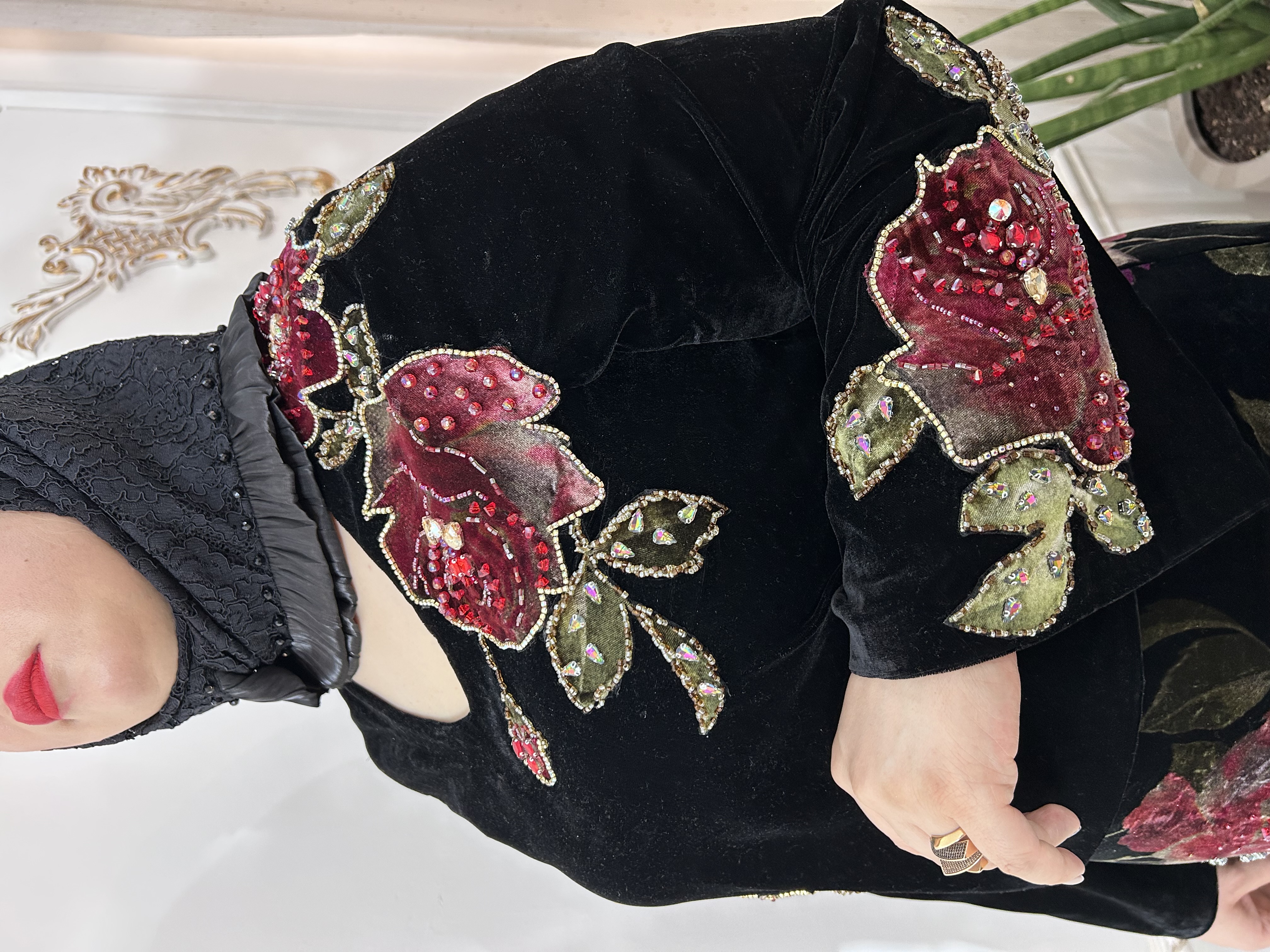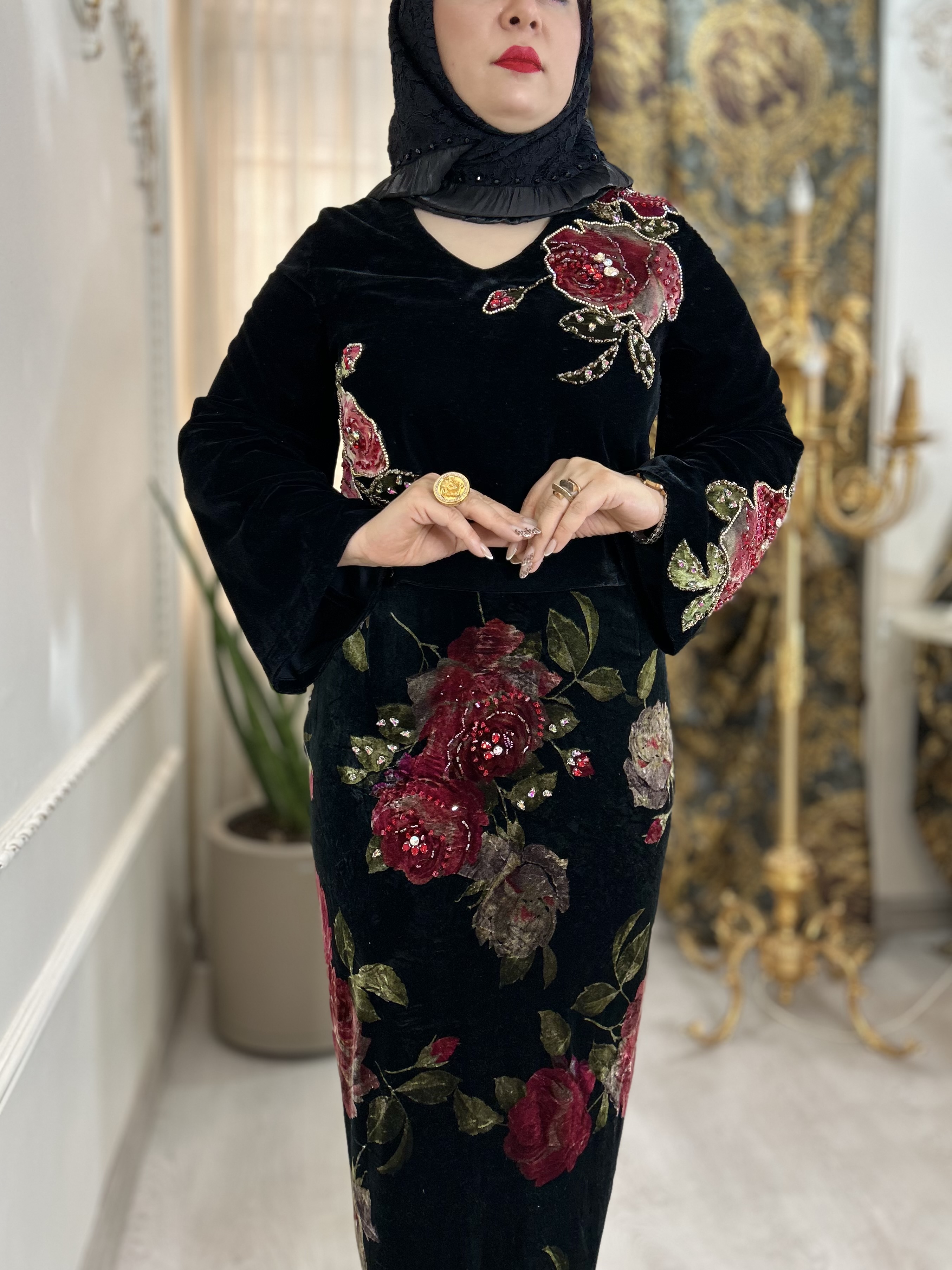 ست زیبا بولیز و دامن رز با پارچه مخمل وارداتی و دیزاین شده با جواهرات اصل.