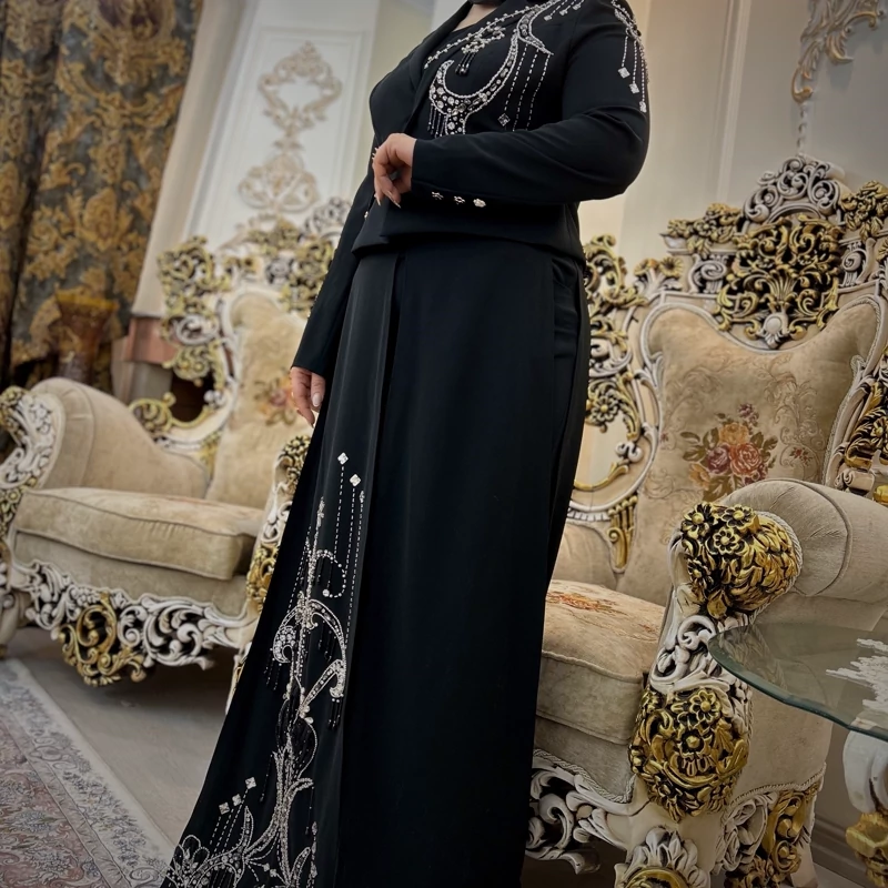 کت و شلوار مجلسی کار شده زیبامون مناسب هر مهمانی و حتی عروسی با جواهر دوری کار دست تمام جواهرات این کار اصل می باشد
